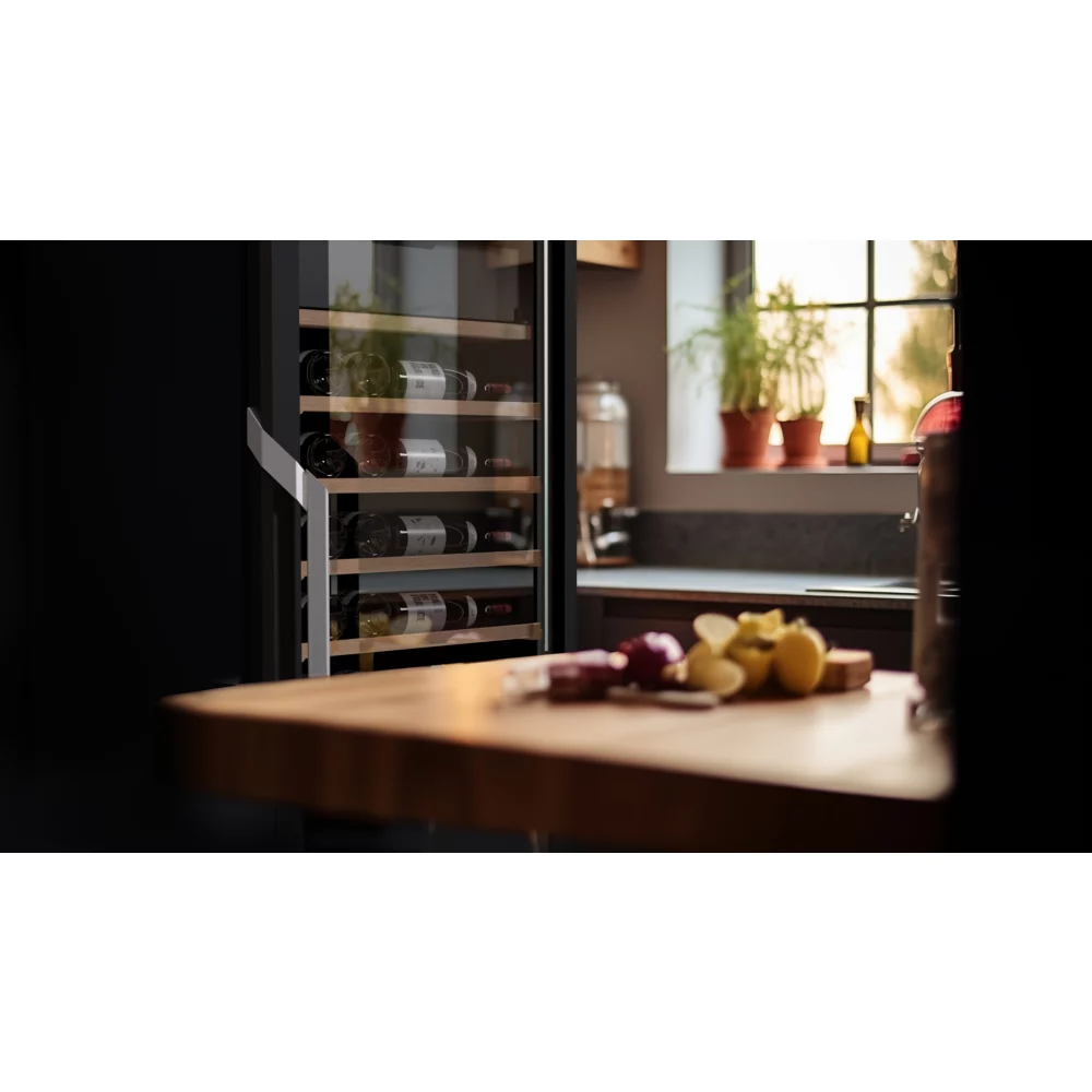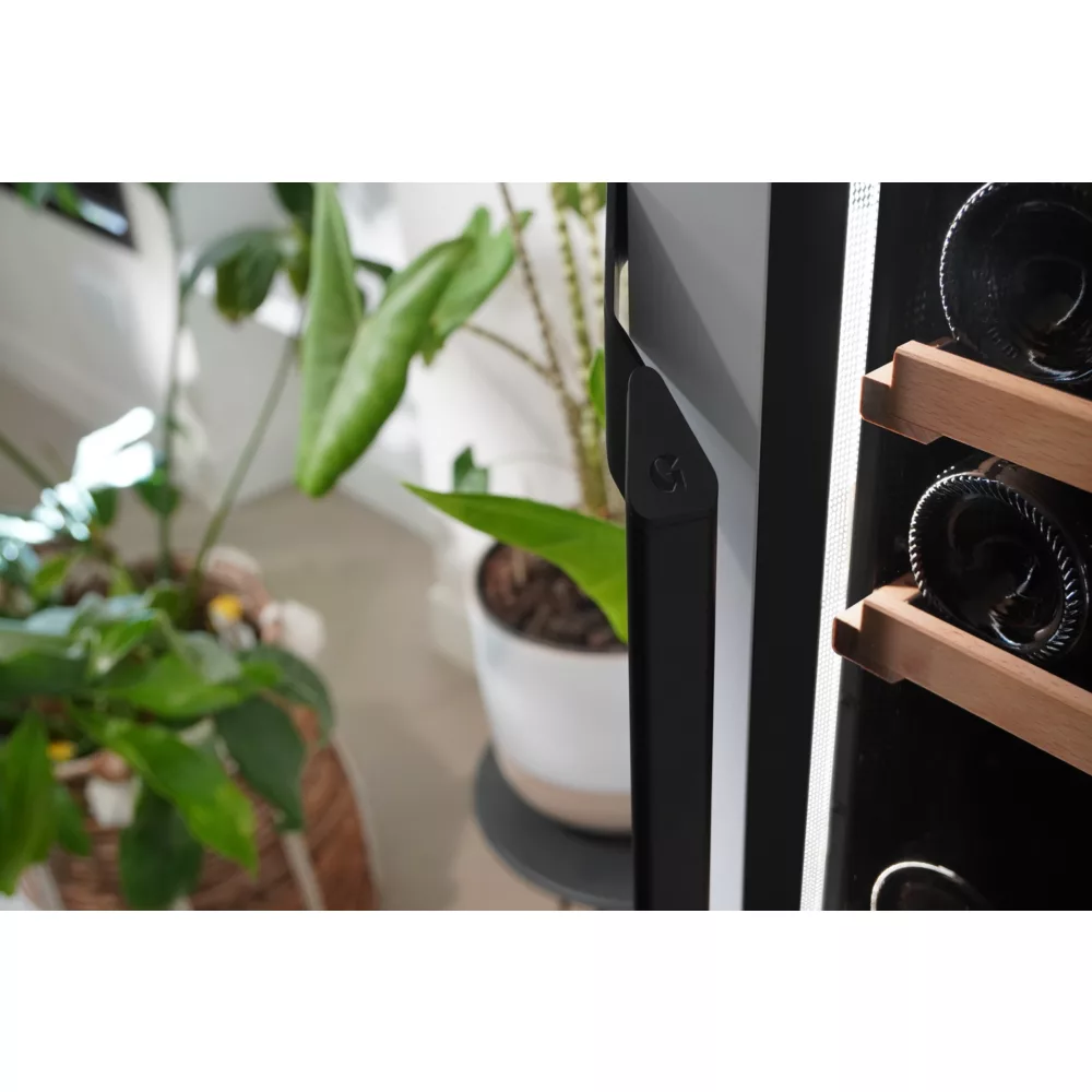 Une mise en lumière : Un bandeau lumineux blanc parcourt toute la hauteur de la cave pour mettre les bouteilles en valeur. Ce bandeau est sans risque pour le vin et vous avez la possibilité de régler l’intensité de l’éclairage.