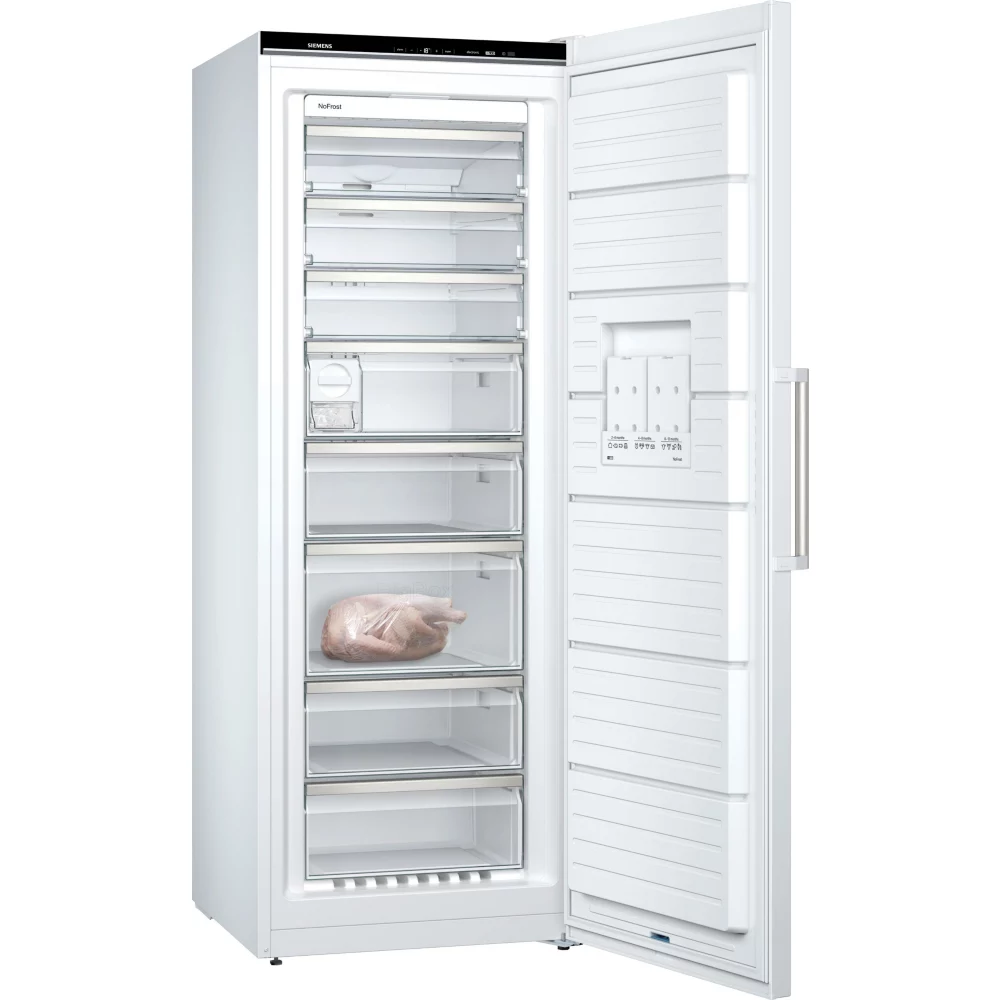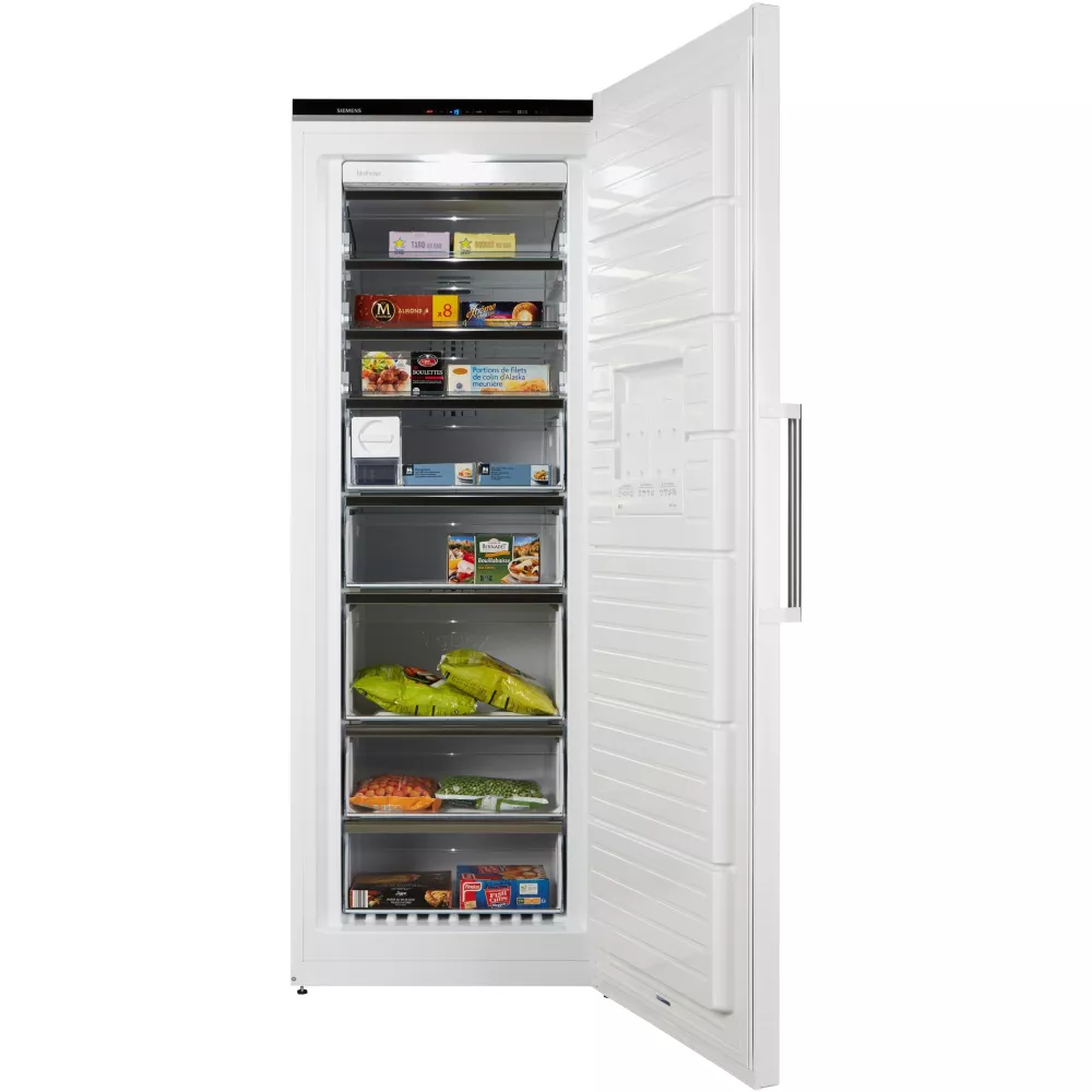 Siemens met à votre disposition un appareil performant et sûr avec ce congélateur armoire. Ses dimensions modestes lui permettent de s’insérer parfaitement dans votre intérieur tandis que sa porte à charnière réversible s’adapte à tous vos besoins pour moduler son ouverture.
