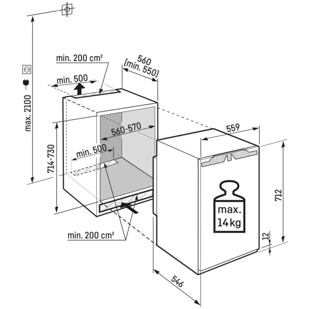 - Dimensions d’encastrement LxHxP : 56 x 72 x 55 cm
