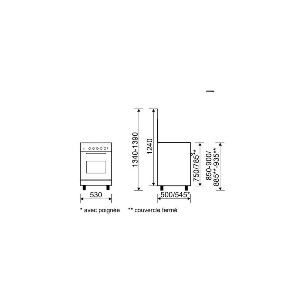 La cuisinière gaz GLEM GA551GWH, avec son design blanc et son plan de cuisson en inox, s’intègre parfaitement entre deux meubles de cuisine. Ses dimensions de 530 x 500/545 mm (avec poignée) en font un appareil compact et encastrable, idéal pour les espaces mesurés. Elle offre un plan de cuisson composé de 4 foyers gaz, incluant deux semi-rapides de 1750 W, un rapide de 3000 W et un auxiliaire de 1000 W, avec une puissance gaz totale de 7,5 kW. La sécurité est assurée par des thermocouples, et le confort d’utilisation est renforcé par les 2 grilles émaillées mates, aspect fonte, et un couvercle en verre amovible.