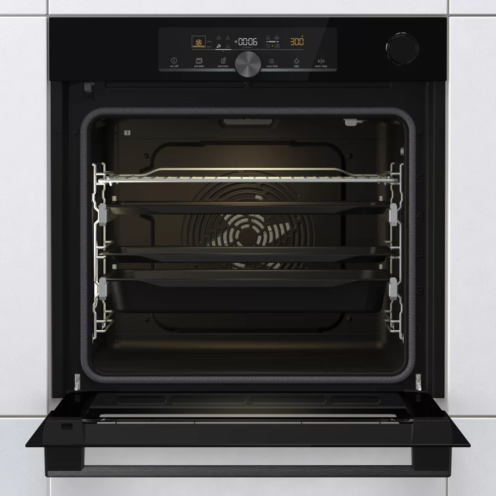 Le service sera simplifié par les rails télescopiques et la porte à ouverture douce et fermeture amortie. Pour nettoyer le Four GORENJE BPSA6747A08BG, ce sera un jeu d’enfant, puisque vous disposerez d’un système de pyrolyse qui réduira les dépôts de graisses en cendres et nettoiera en profondeur. Grâce à la technologie AquaClean, vous pourrez également nettoyer la cavité par vapeur quand elle ne sera que peu sale.