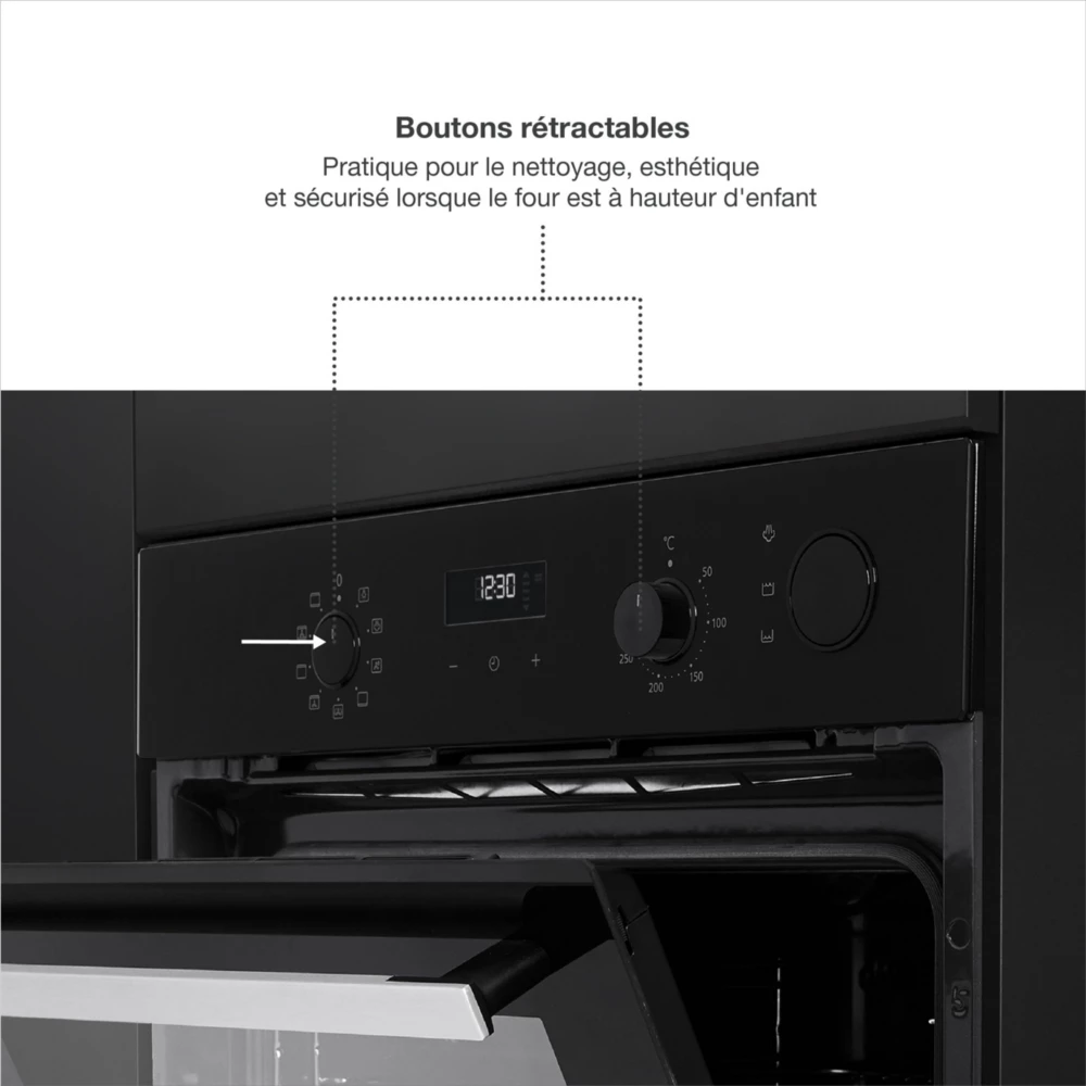 Le four MIOGO est également équipé d’un bouton push-pull, esthétique et pratique pour le nettoyage !