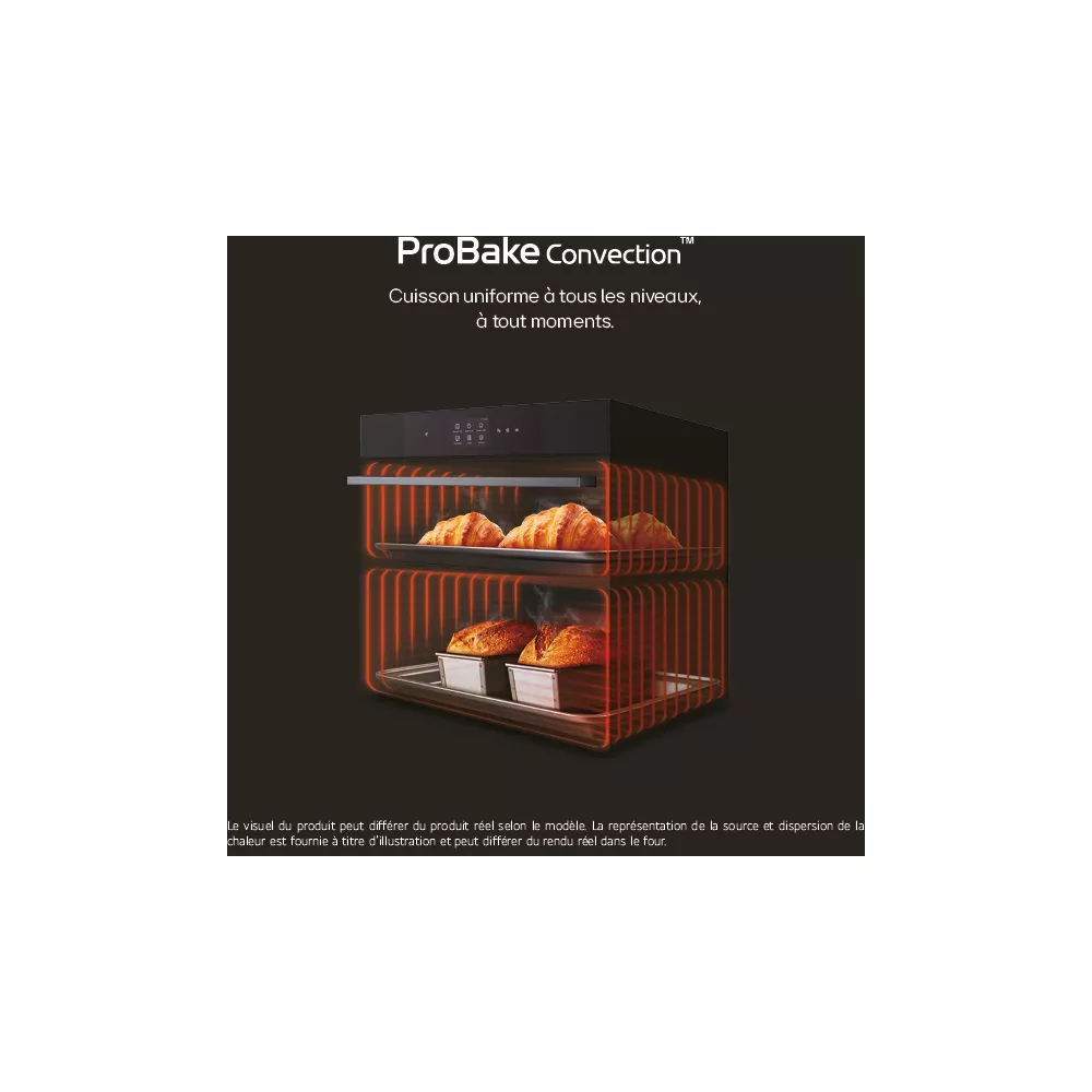 Ce four spacieux de 76 litres vous offre une maîtrise optimale de vos plats, même ceux de taille XXL, répondant ainsi à tous vos besoins culinaires. Avec la technologie ProBake Convection, bénéficiez d’une montée en température rapide et d’une cuisson précise et uniforme sur tous les niveaux, à tout moment.