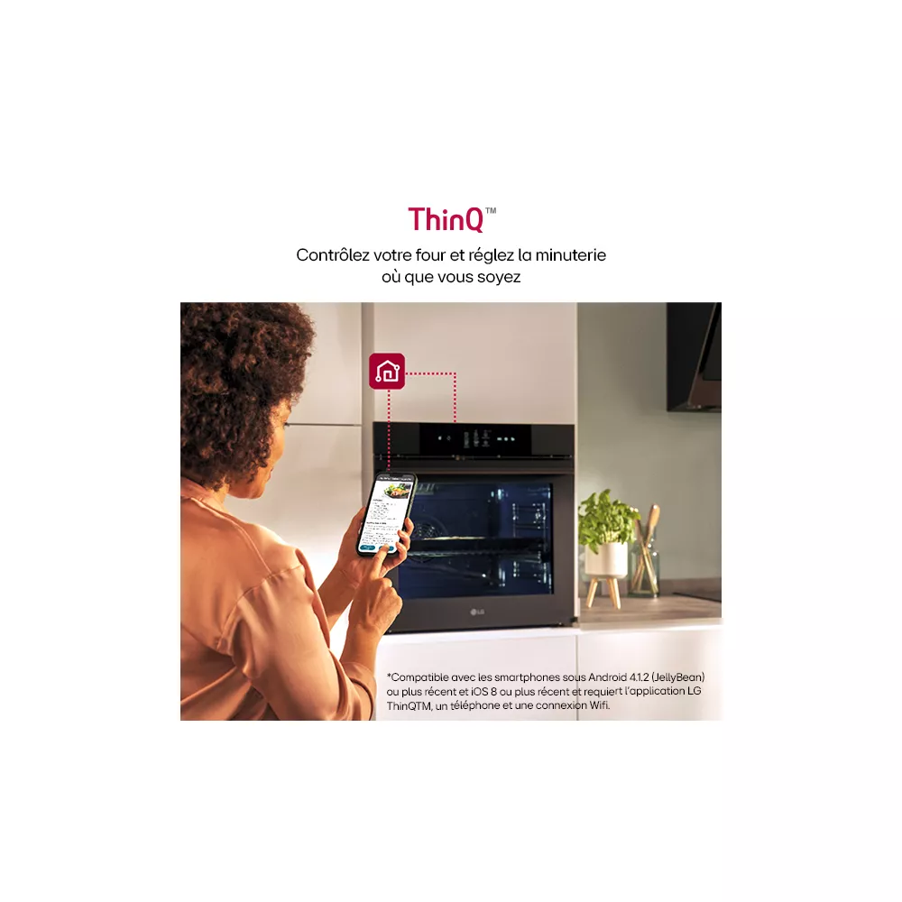 Maîtrisez votre cuisine avec ce four connectable via l’application LG ThinQ. Démarrez/arrêtez le four à distance, ajustez la température et la minuterie, recevez des recettes directement sur le four ou créez les vôtres pour une expérience culinaire unique. Restez informé avec des alertes de nettoyage et le Smart Diagnosis, pour détecter les mauvaises utilisations de votre four. Transformez chaque repas en une expérience intelligente et pratique, accessible du bout des doigts.