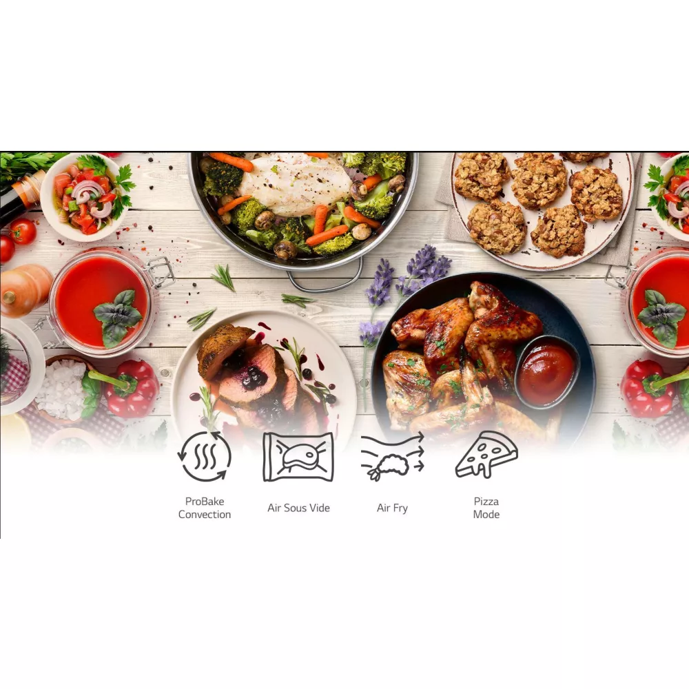Pour une expérience culinaire riche, optez pour une cuisine saine et savoureuse avec votre four LG. Moins de matières grasses avec AirFry et cuisson basse température avec Air Sous-Vide : une combinaison gourmande pour le Chef qui sommeille en vous.