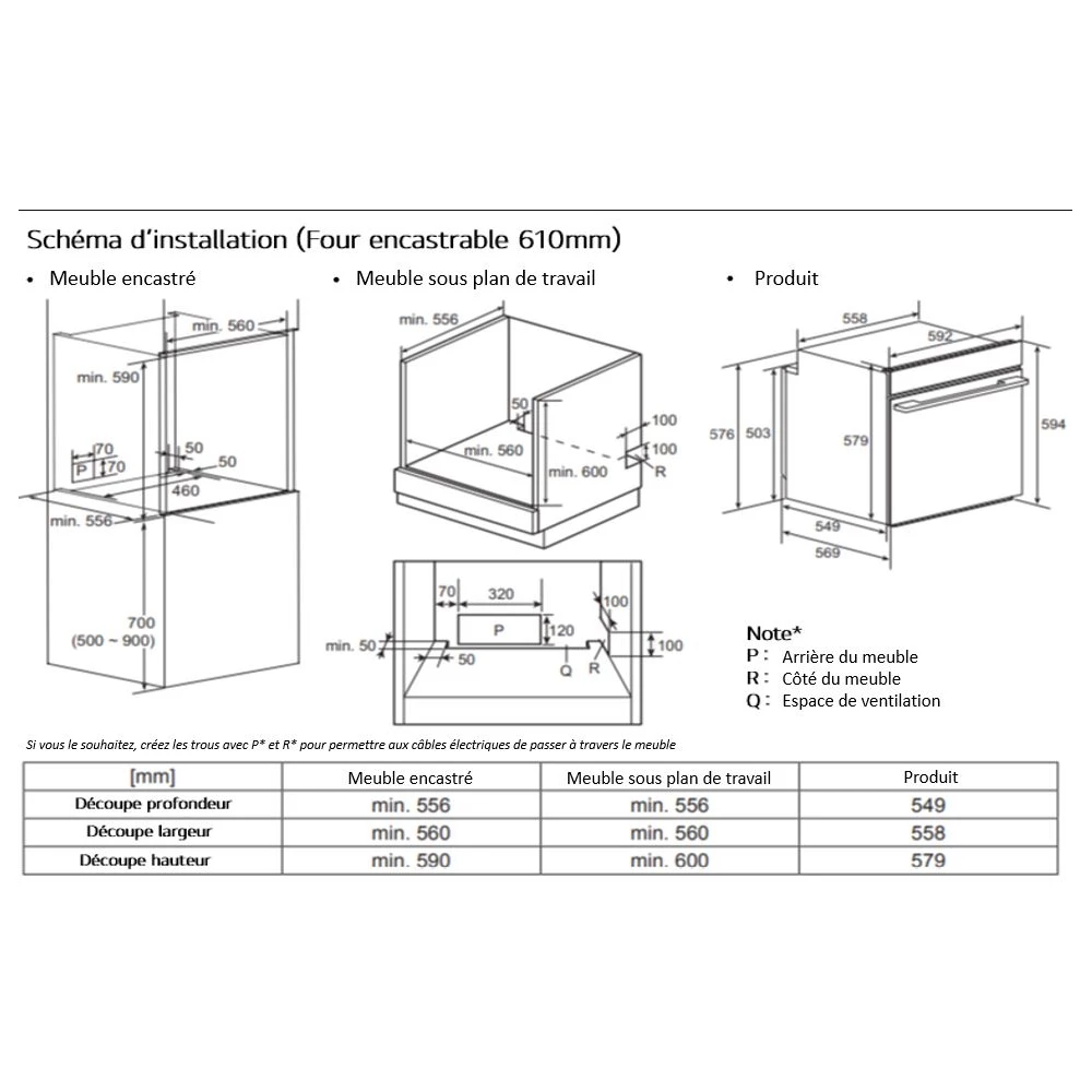 • Type d’encastrement : Four standard (60 x 60 cm)