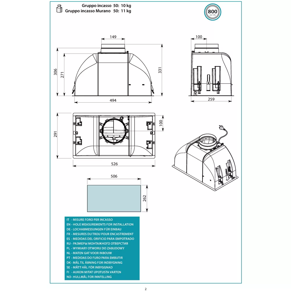 - Type de hotte : : encastrable meuble – évacuation et recyclage