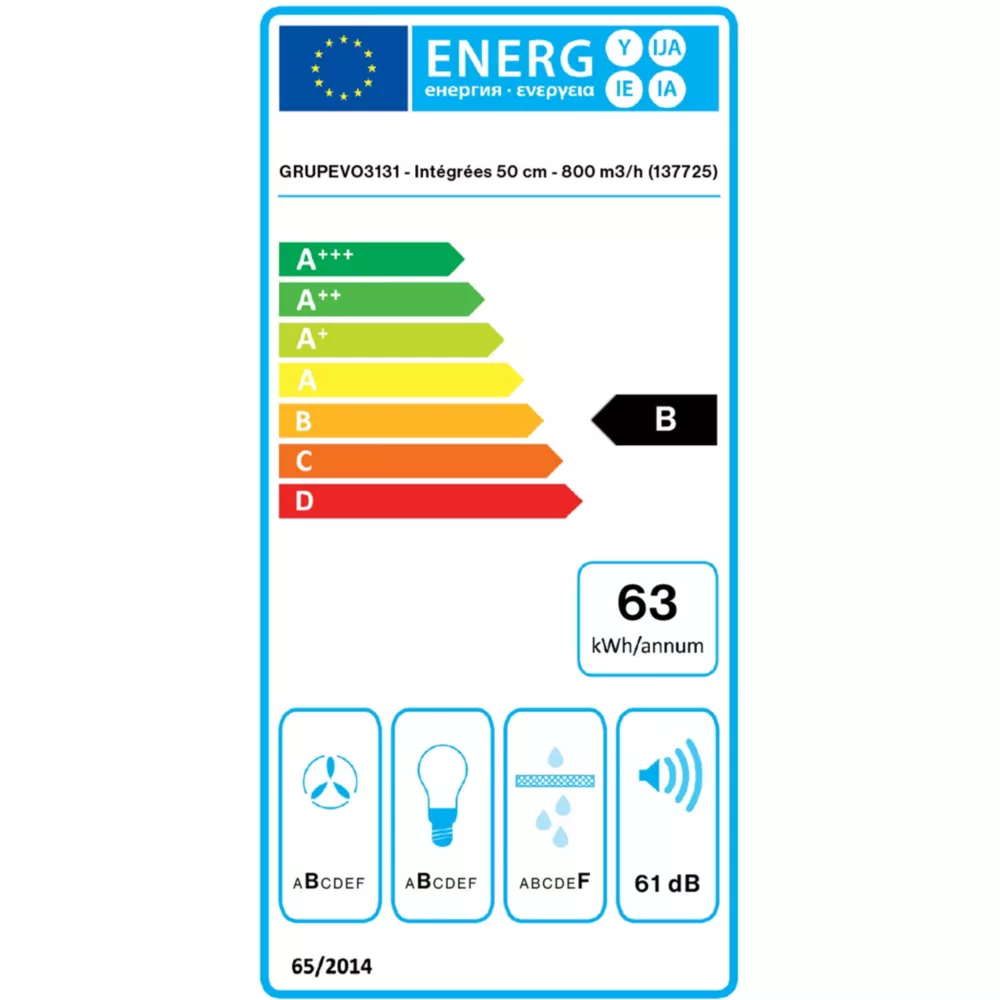 - Classe d’efficacité de filtration des graisses (présent sur le Label Energie) : F
