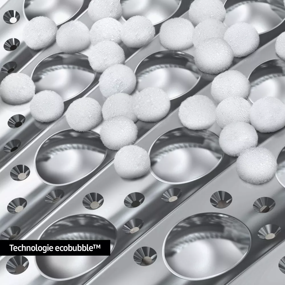 - Ecobubble : transforme la lessive en mousse ultra-performante, même à basse température. Vous respectez votre linge tout en économisant de l’énergie.
