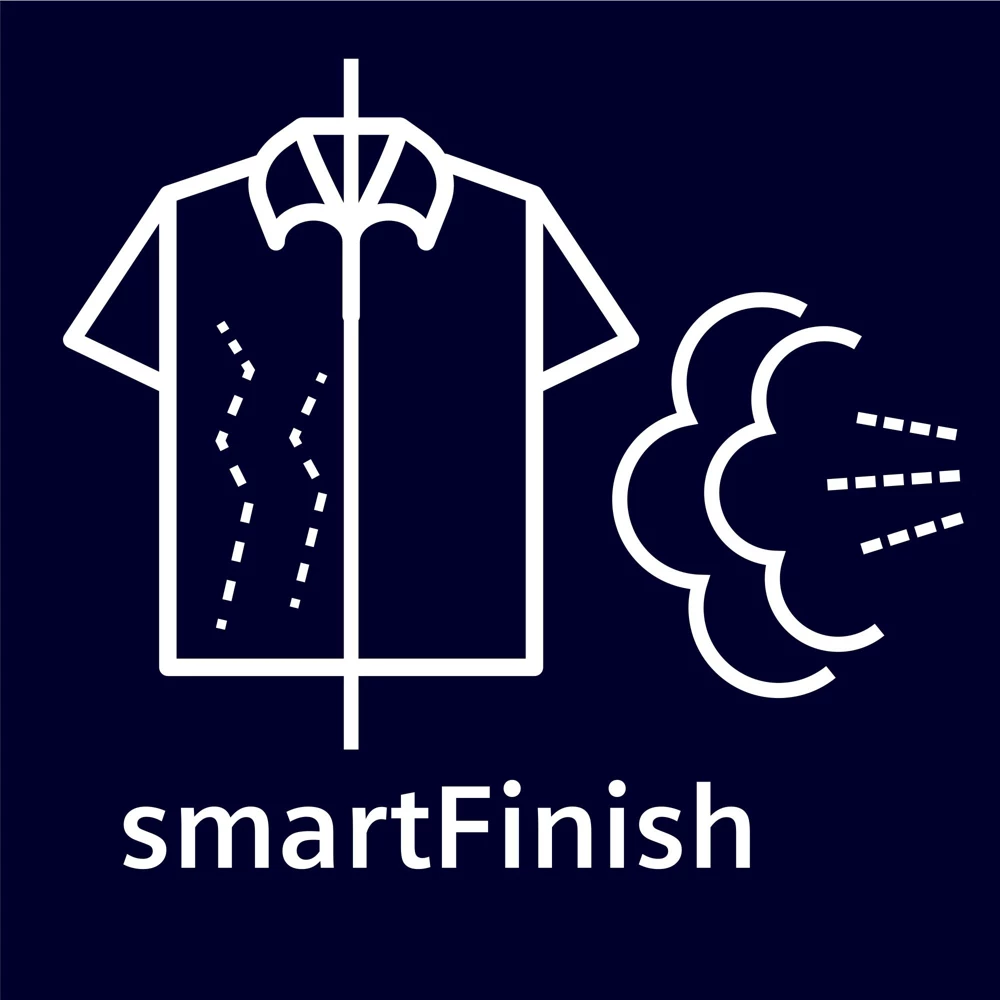 - SmartFinish : réduit les plis de votre linge sec froissé pour faciliter le repassage, voire le rendre inutile.