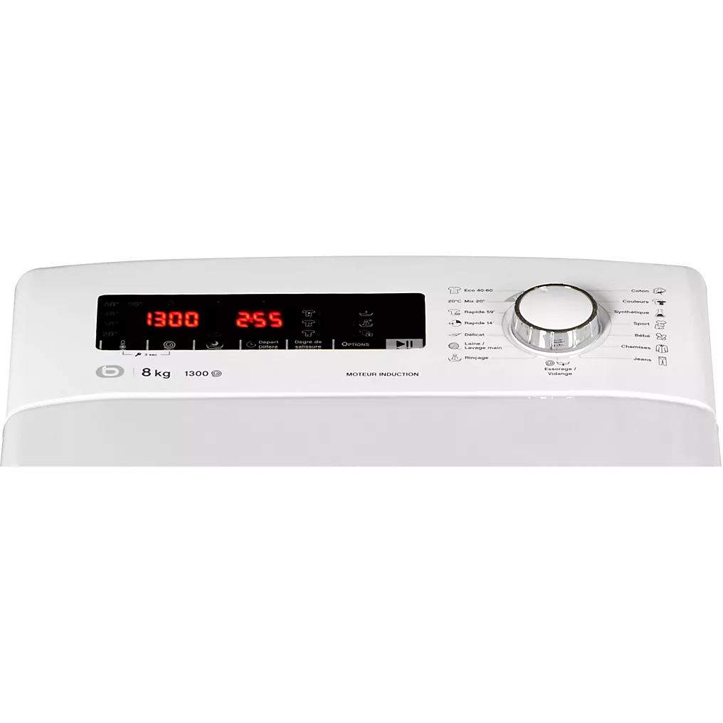 - Programmes : coton, délicat, éco, jeans, laine, synthétique