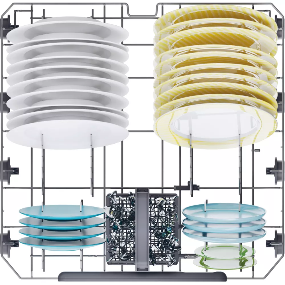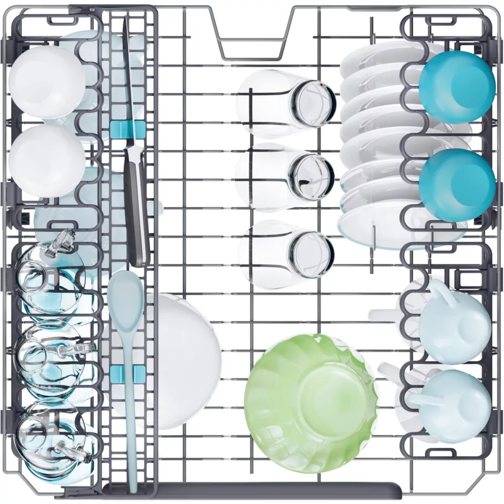 - Avantage du panier supérieur réglable en hauteur : Permet de laver des plats de grandes tailles ou de grands verres à pieds.
