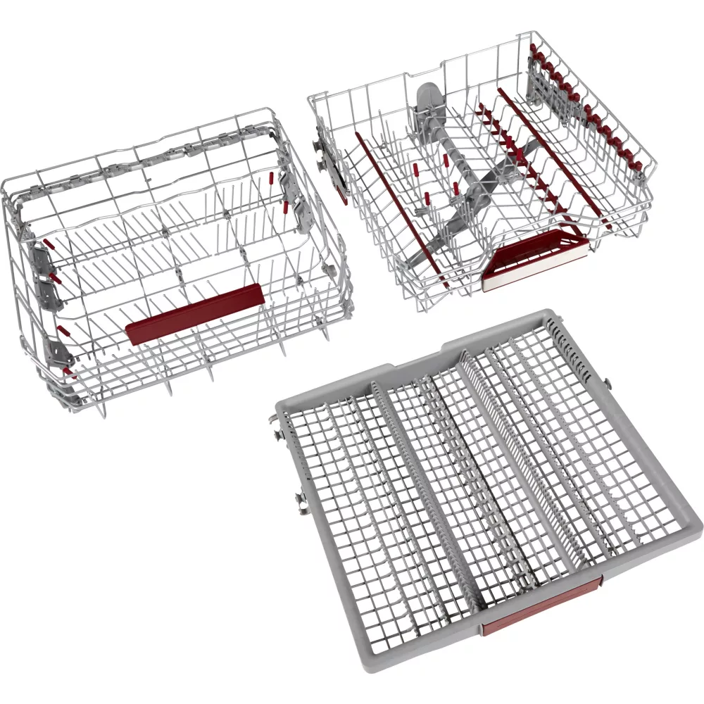 - Avantage du panier supérieur réglable en hauteur : Permet de laver des plats de grandes tailles ou de grands verres à pieds.