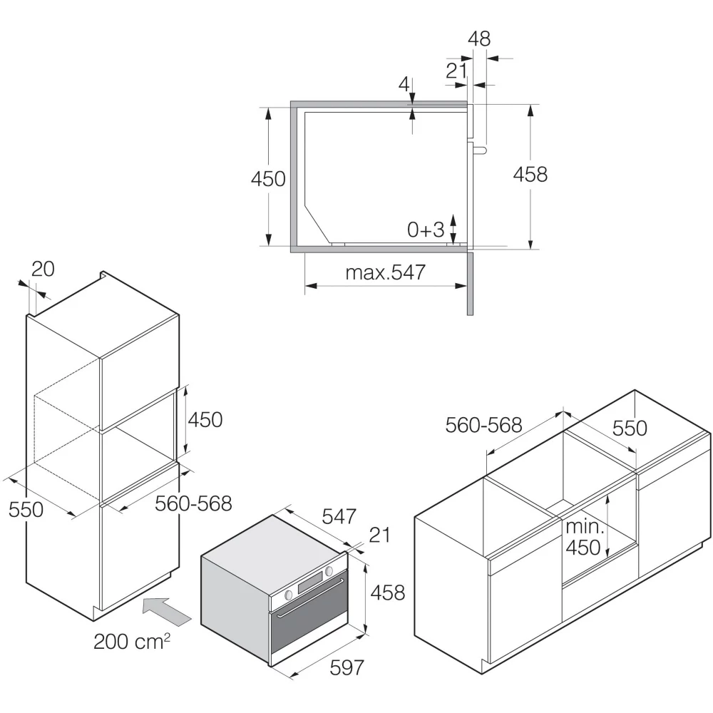 - Hauteur niche d’encastrement : Micro ondes hauteur 45 cm
