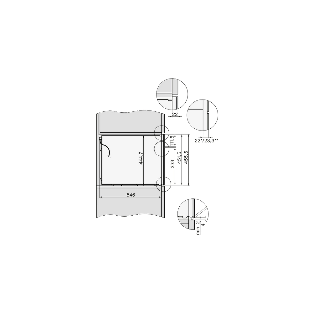 - Hauteur niche d’encastrement : Micro ondes hauteur 45 cm