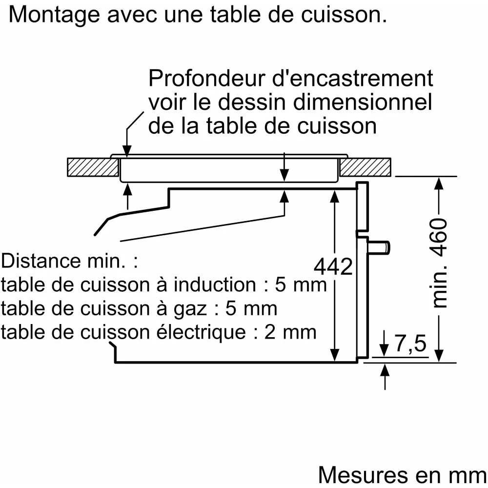 - Hauteur niche d’encastrement : Micro ondes hauteur 45 cm