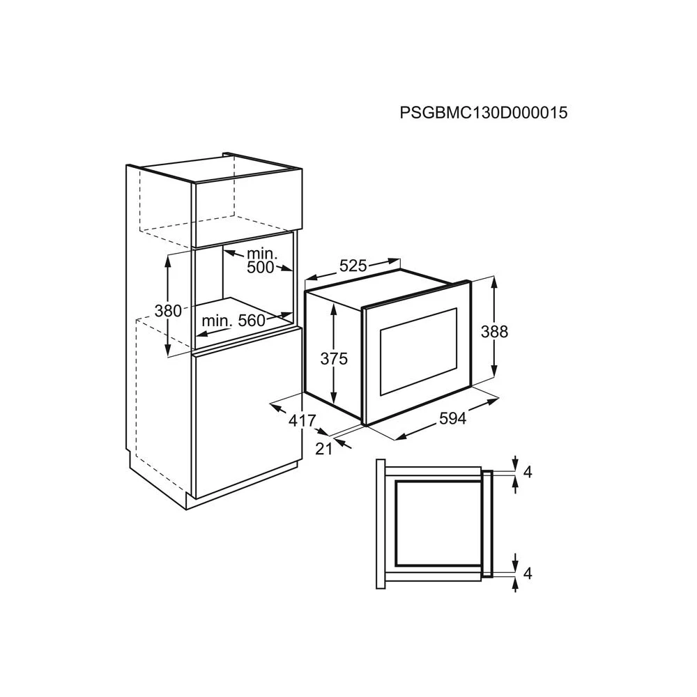 - Hauteur niche d’encastrement : Micro ondes hauteur 38 cm