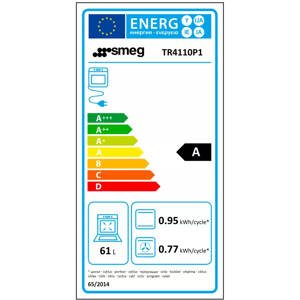 Les lignes douces et classiques du piano de cuisson SMEG TR 4110 les feront s’adapter facilement à toute cuisine. Grâce à la garantie de deux ans votre cuisinière sera protégée d’éventuels défauts de fabrication. Sa porte tempérée munie du système de sécurité Thermo Couple vous assure une sécurité constante. En activant la fonction ECO vous pourrez en outre maximiser les économies d’énergie: l’association du ventilateur et de la résistance circulaire permet de cuire au même moment et à la même température différents aliments sur différents niveaux sans que leur goût ne se trouve altéré. Le nettoyage manuel du four est également l’assurance de maintenir une faible consommation énergétique.