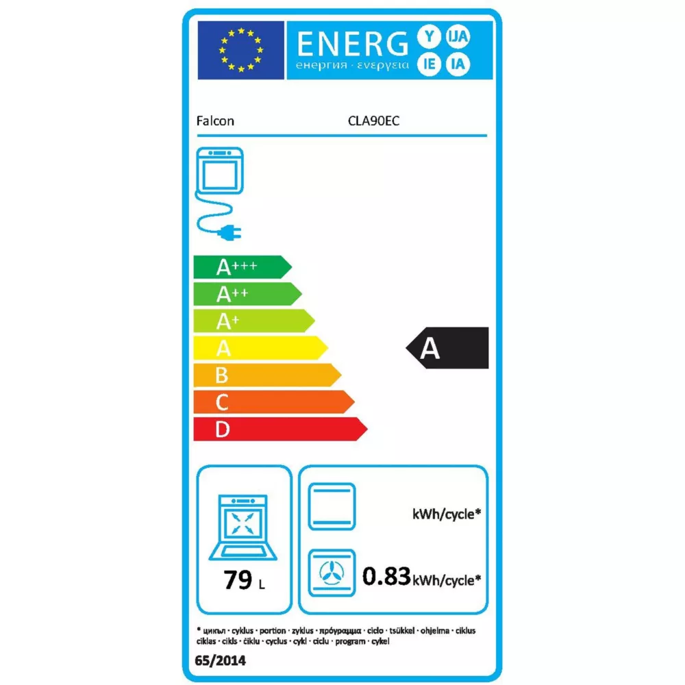 - Valeurs du label énergie : Label énergie A, Consommation en convection naturelle 0,79 kW, Consommation en chaleur tournante 0,83 kW