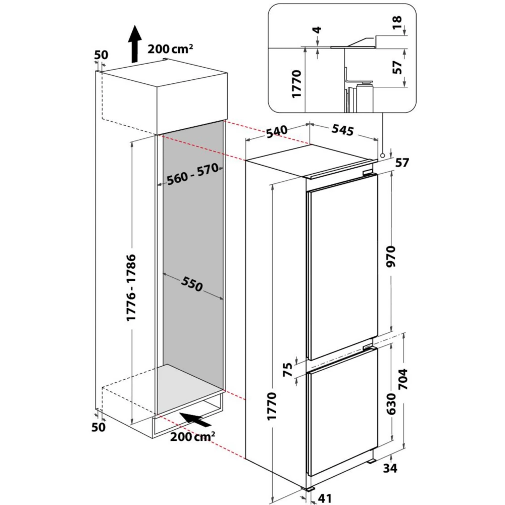- Dimensions d’encastrement maxi l x h x p : 57 x 178.6 x 55 cm