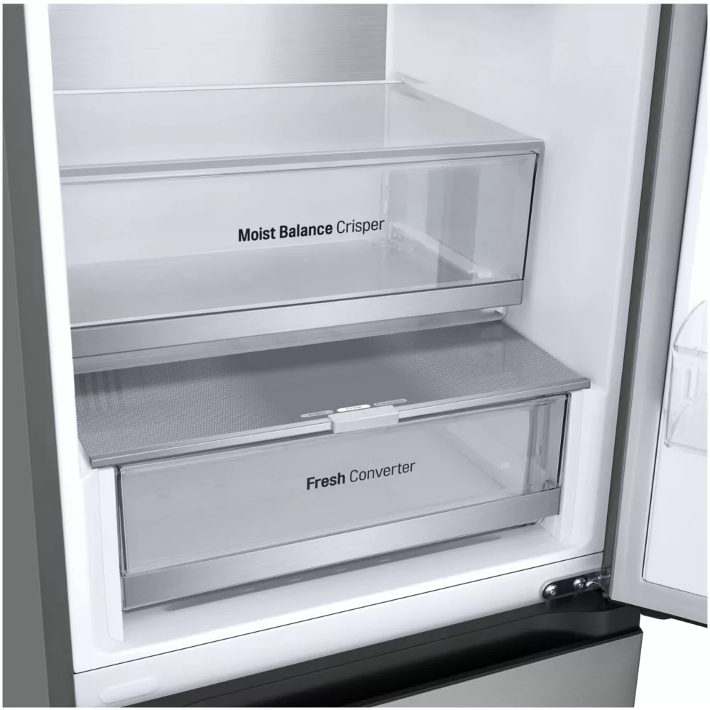 Le réfrigérateur combiné LG GBV5240APY, d’une hauteur de 2,03 mètres et d’une capacité généreuse de 387 litres, est conçu pour répondre aux besoins des familles modernes. Grâce à la technologie Door Cooling™, il assure un refroidissement rapide et uniforme, réduisant les fluctuations de température à seulement 0.5°C, ce qui permet de maintenir les aliments frais plus longtemps. La répartition homogène du froid, de l’avant à l’arrière, garantit une fraîcheur constante pour tous vos produits, y compris ceux rangés dans la porte. Avec ses 277 litres dédiés au réfrigérateur et 110 litres au congélateur, ce modèle est idéal pour stocker une grande quantité d’aliments tout en conservant leur qualité optimale.