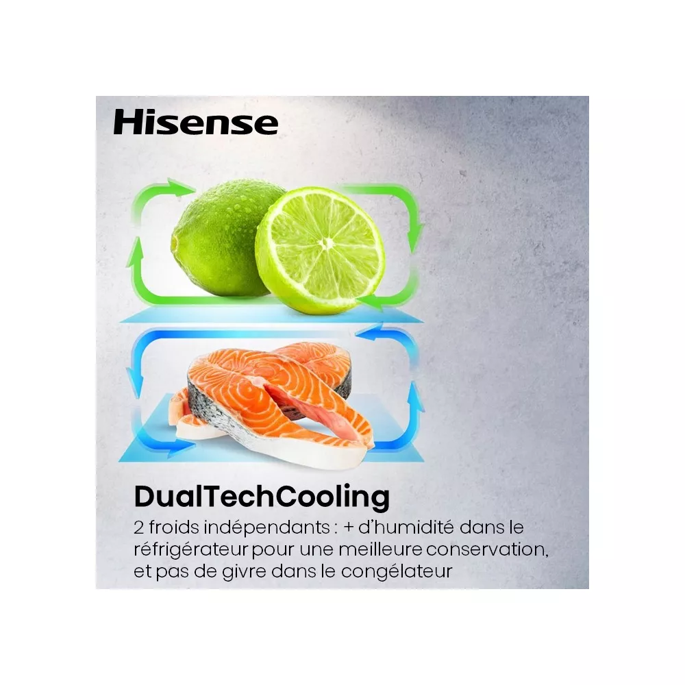 • Dual Tech Cooling : deux systèmes de froid indépendants pour garder plus d’humidité dans le réfrigérateur et éviter les mélanges d’odeurs.