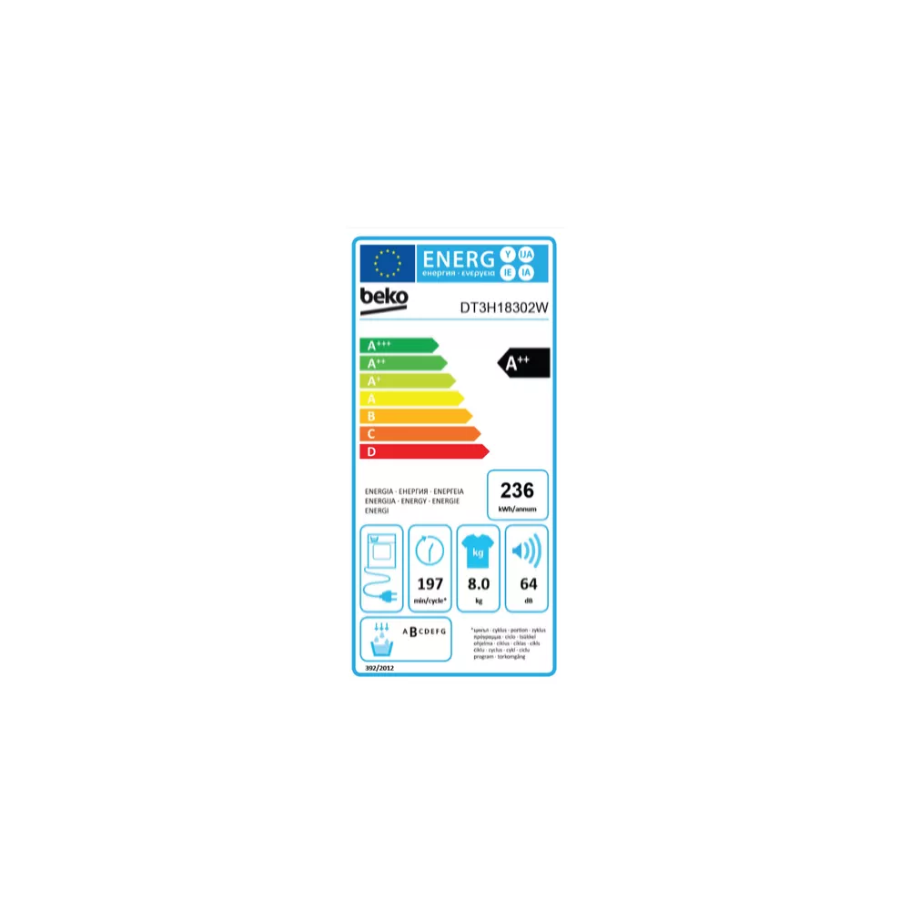 Sèche linge pompe à chaleur BEKO DT3H18302W