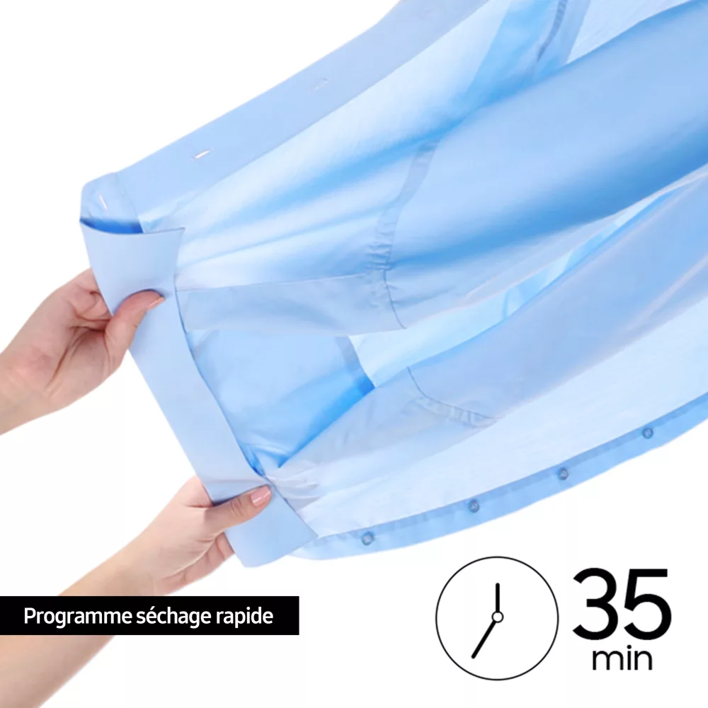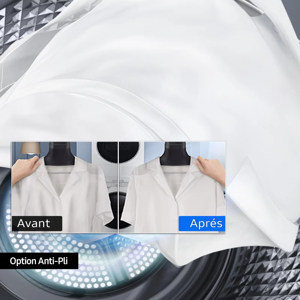 - AI Dry : un capteur d’humidité mesure en permanence l’humidité des vêtements et détecte avec précision leur degré de séchage. Par conséquence, le temps de séchage est réduit.