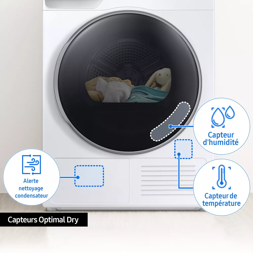 Avec son tambour pouvant accueillir jusqu’à 9 kg de linge, le sèche-linge SAMSUNG DV90BB7445GWS3 Bespoke vous facilitera la vie au quotidien. Il conviendra notamment aux familles nombreuses qui ont besoin de sécher de grandes quantités de linge en peu de temps.