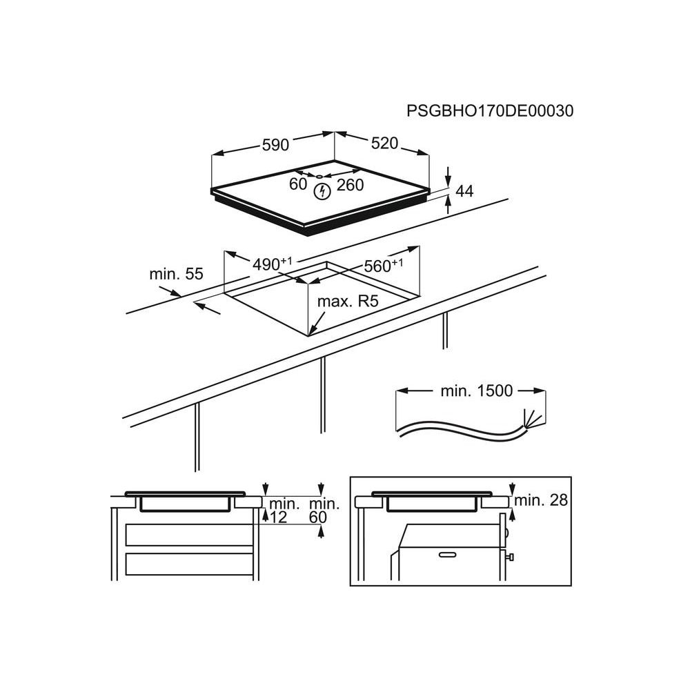 • LxHxP (encastrement) : 56 x 4.4 x 49 cm