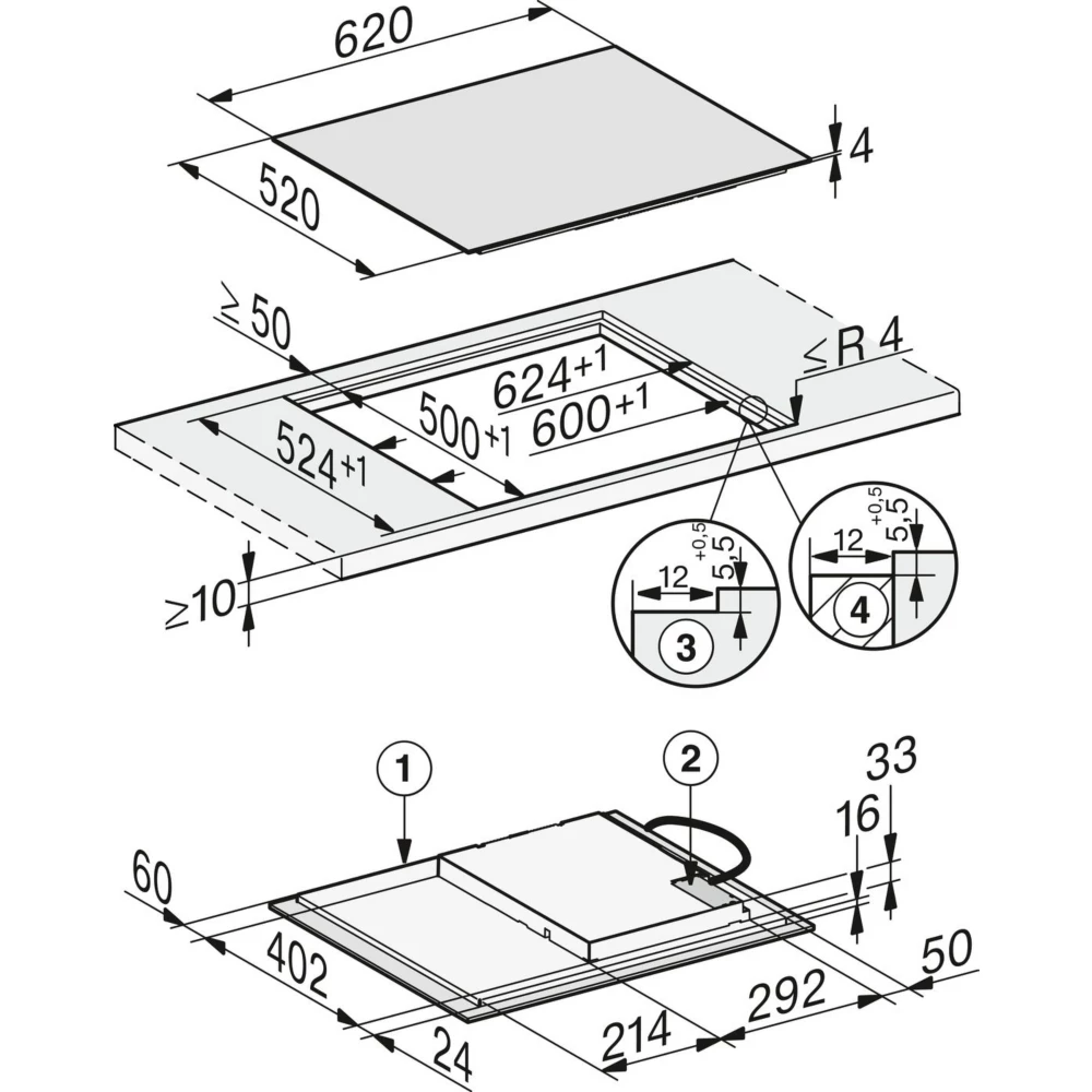 • LxHxP (encastrement) : 60 x 5.3 x 50 cm