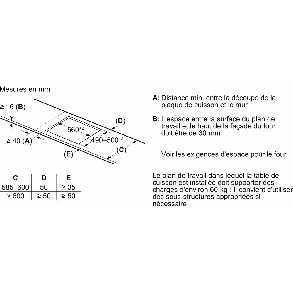 - LxHxP (encastrement) : 56 x 50 x 5.1 cm