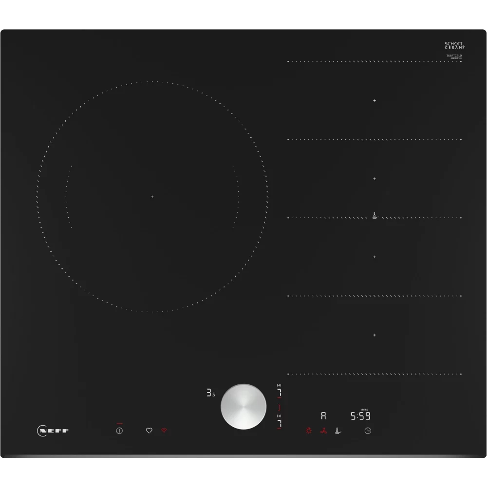 Profitez de toute l’expertise NEFF avec la table à induction T66FTC4L0 N70 compatible avec une largeur d’encastrement standard de 56 cm. Cette plaque de cuisson vitrocéramique détectera vos casseroles et activera la chaleur de manière précise, directement sous le récipient à chauffer, et se coupera immédiatement dès que le signal électromagnétique sera perdu.