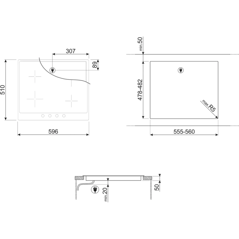 - LxHxP (encastrement) : 56 x 7 x 48 cm