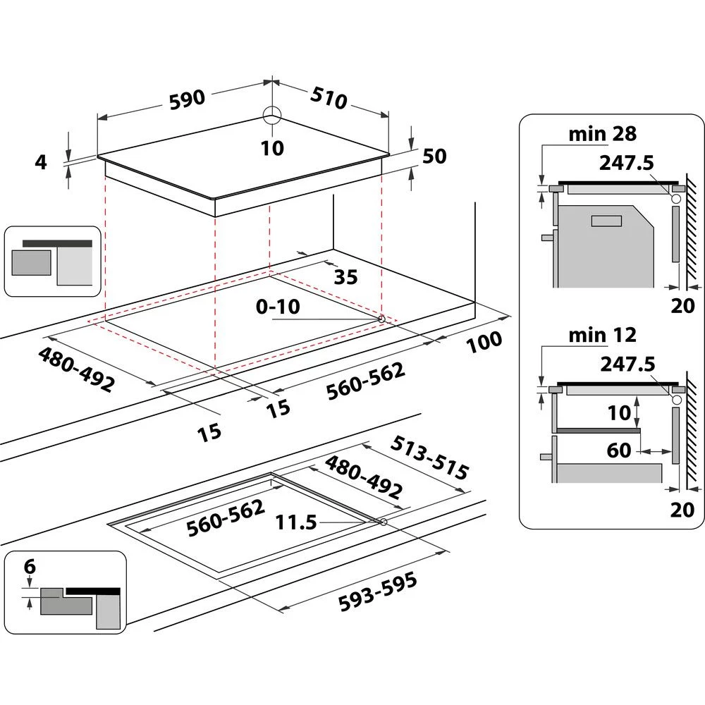 • LxHxP (encastrement) : 56 x 2.8 x 48 cm